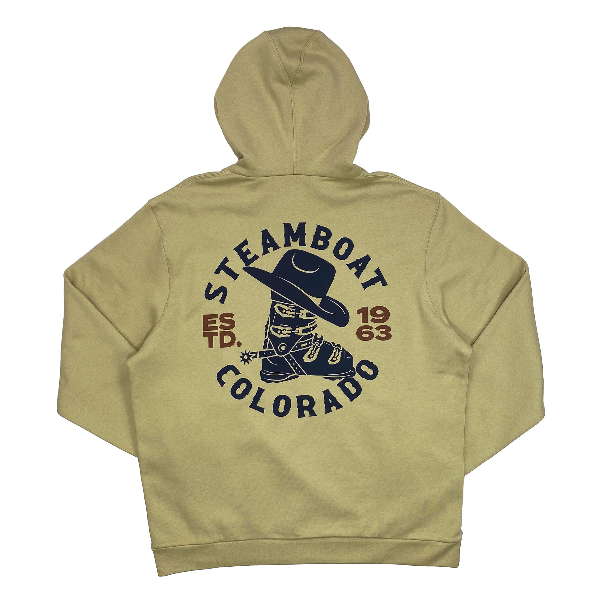 Each hoodie features a small, screen-printed cowboy boot on the left chest, as well as a large boot encircled by Steamboat, Colorado EST. 1963 on the back, and our iconic flag logo on the left sleeve. Perfect gift for adults of any age in your life who loves the western spirit!