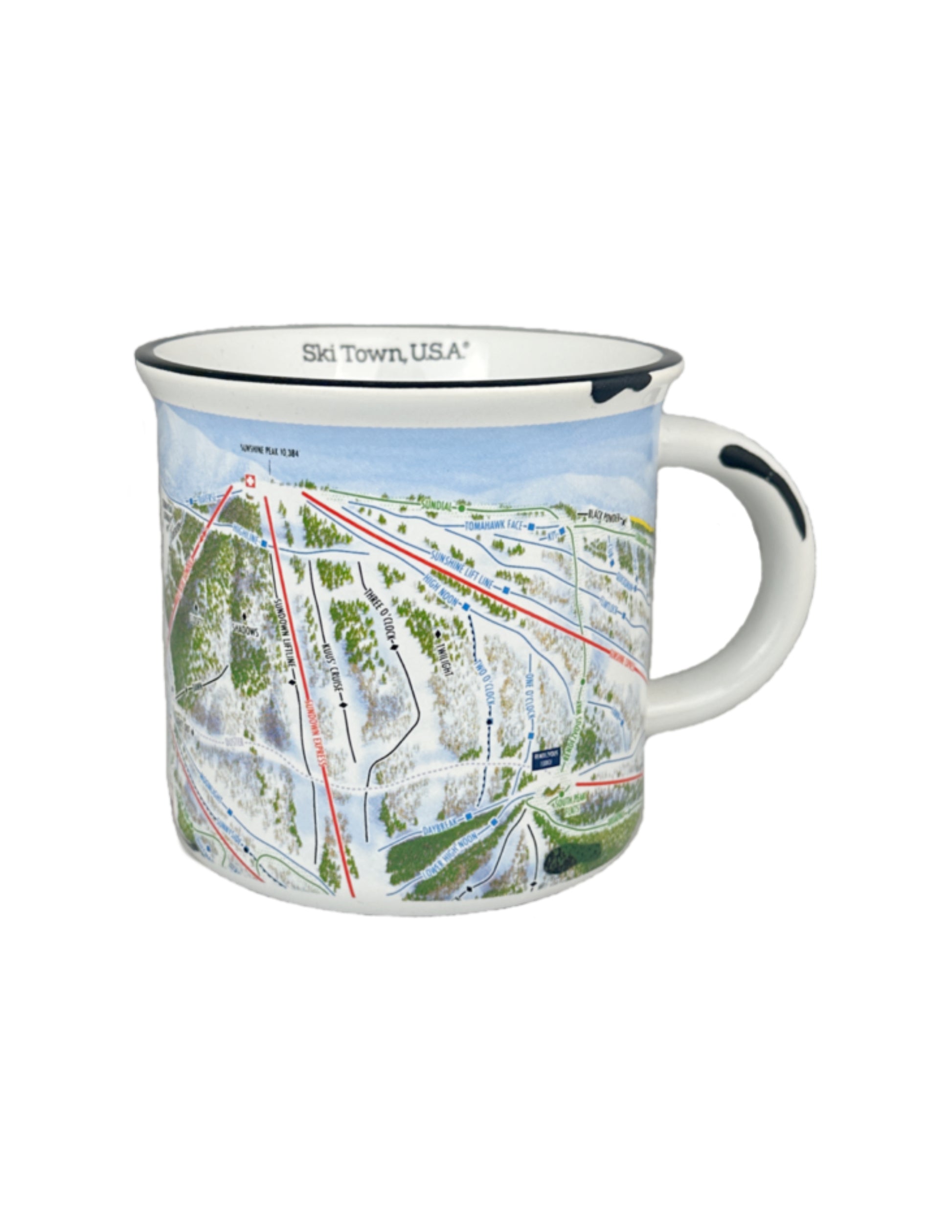 Warm up with a hot beverage while reminiscing about your favorite runs beautifully printed on this trail map mug.